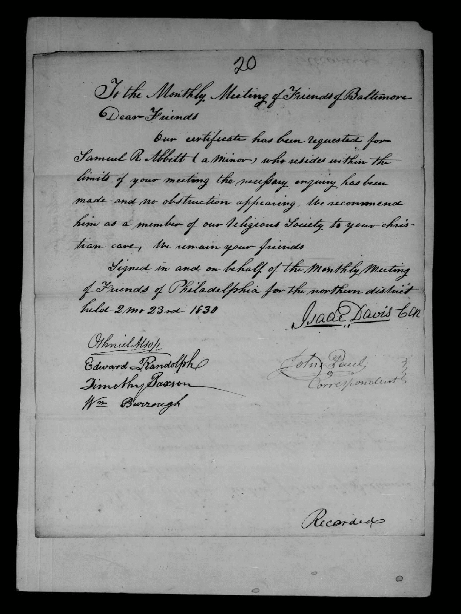 Baltimore City Society of Friends (Quaker) Records